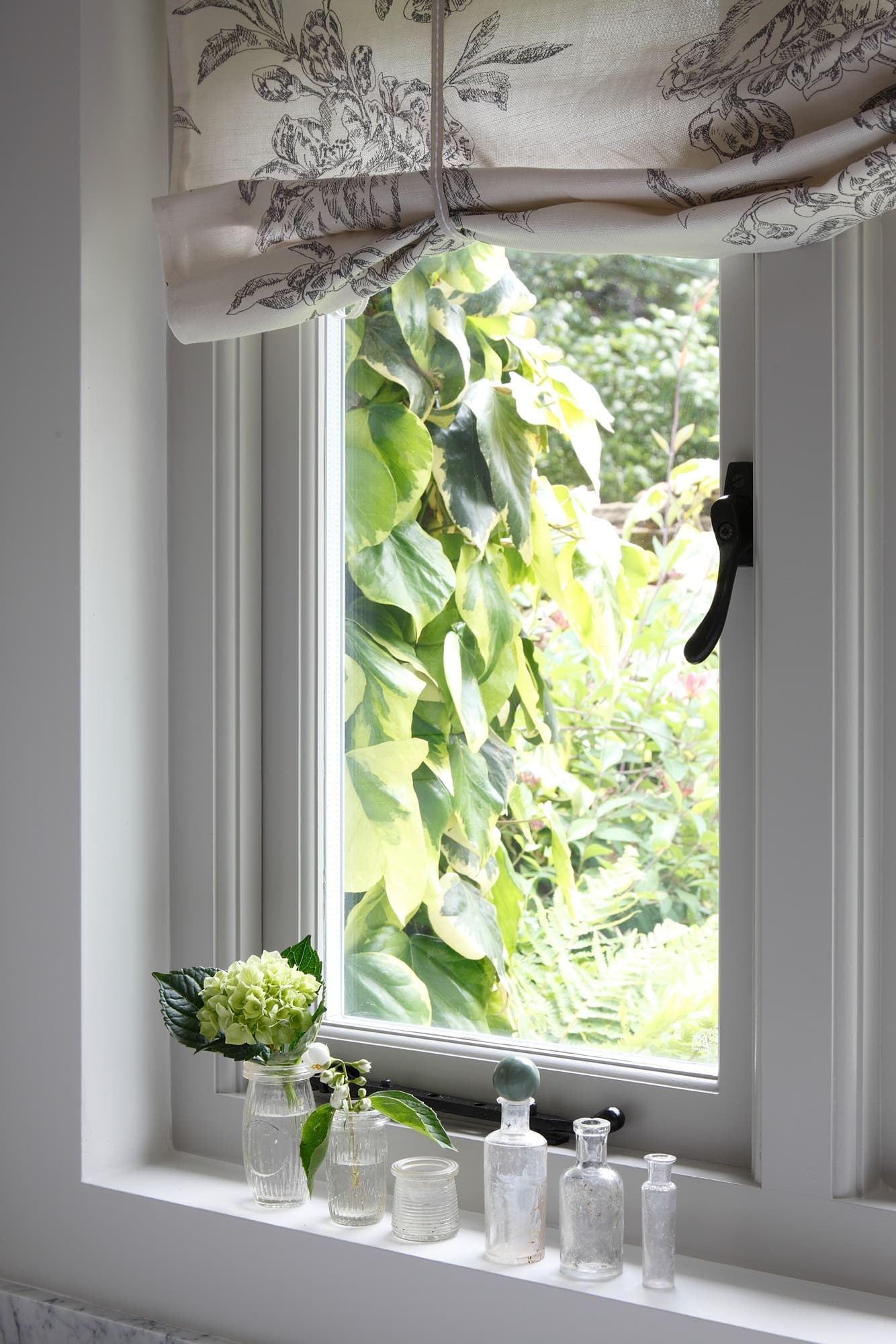 This unusual family house occupies the old ballroom of a grand Georgian house with equally grand gardens. In collaboration with the architect, we reimagined the space, taking down dividing walls and removing the ceiling to reveal the pitched roof, to make a light and airy space that takes full advantage of the sublime views.